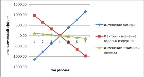 Данная таблица отражает процентное изменение ЧТС проекта при процентном изменении фактора. Произведенные расчеты можно отобразить на графике (рисунок 2.12)