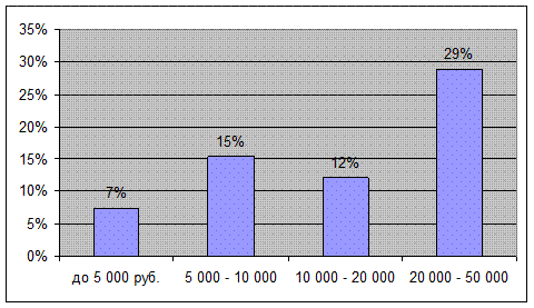Анализ структуры заемщиков - физических лиц банка показал, что возраст большинства заемщиков от 36 до 55 лет, среди клиентов больше женщин, большая часть клиентов состоят в браке и имеют 1-2 детей. Большинство клиентов работают в государственных / муниципальных учреждениях, а также в коммерческих организациях и в большинстве я являются служащими. Доход потребителей – средний (от 20 до 30 тысяч рублей).