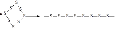 В этом состоянии физические свойства серы иные, чем у обычной кристаллической или каменной серы, — они более типичны для каучукоподобных полимеров. Мягкая, очень эластичная и полупрозрачная, она не имеет в отличие от кристаллических веществ определенной точки плавления. При повышении температуры сера сначала размягчается, а затем течет как высоковязкая жидкость. Однако полимерная сера не стабильна и при комнатной температуре через несколько дней снова переходит в обычную порошкообразную или кристаллическую форму.
