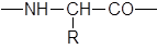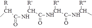 где группы R в общем различны в каждом звене на протяжении всей цепи и могут соответствовать любой из более чем 25 аминокислот. Различные белки характеризуются различным набором и количественным соотношением этих аминокислот.