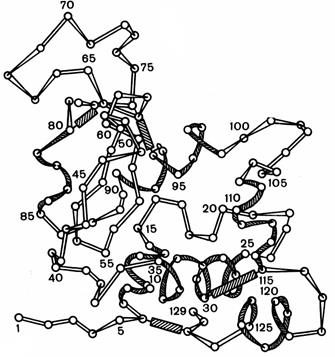 Рис. 5. Первичная структура полипептидной цепи лизоцима.