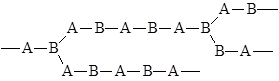 У полимеров другого типа (называемых сополимерами) соотношение двух различных звеньев [A] и [B] не постоянно, а расположение их в цепи обычно имеет случайный характер, например