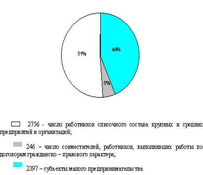 В общей численности занятого в экономике города населения 51% составляли штатные работники крупных и средних предприятий и организаций, около 5% - работники на условиях совместительства и по договорам гражданско – правового характера (рис. 3).