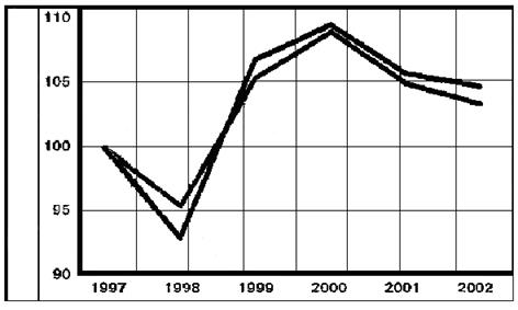 На формирование трудового потенциала столицы существенное влияние оказывают ее трудовые связи с пригородами. Вследствие этого – статистика, характеризующая численность занятых, завышена за счет жителей Подмосковья, работающих в Москве. Показатель занятости москвичей, отнесенный к населению столицы в трудоспособном возрасте, превышает численность трудоспособного населения (Приложение - табл. 1). Из таблицы видно, что в 2000 и в 2001 гг. превышение составляло уже более трёхсот человек, а отношение занятого населения к трудоспособному – 106,7 и 105,9%.