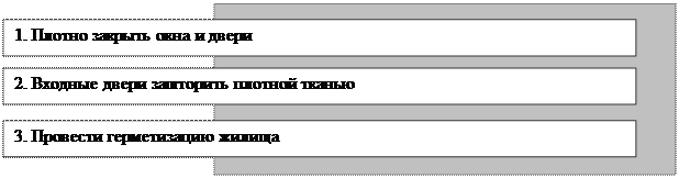 Ситуация 1. На химическом предприятии произошла авария с выбросом хлора. Облако зараженного воздуха распространяется в направлении вашего района. Возможности эвакуироваться из зоны заражения нет. Что Вам необходимо предпринять при отсутствии индивидуальных средств защиты и возможности эвакуироваться? Заполните схему.
