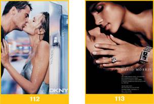 Особо следует обратить внимание на то, что изображение, на котором мужчина целует женщину (DKNY) воспринимается принципиально хуже того, на котором доминирует женщина (David Morris).