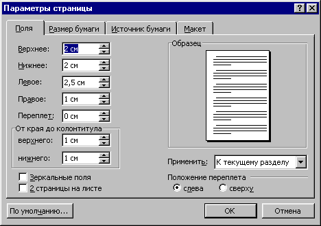 Для создания на первой странице документа колонтитула, отличного от колонтитулов других страниц, необходимо вызвать окно Параметры страницы
