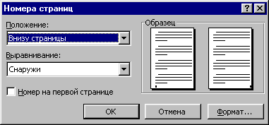 Рис. 35. Диалоговое окно вставки номеров страниц