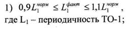 Периодичность ТО-1 установлена по фактически выполненному пробегу в километрах с учетом условий эксплуатации.