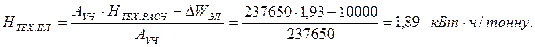 Затраты на электроэнергию, приходящиеся на единицу выпускаемой продукции: