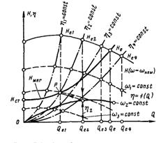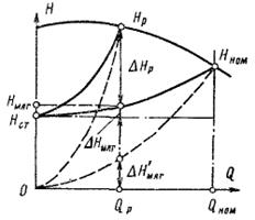 Н-характеристикой и характеристикой магистрали (кривые 1