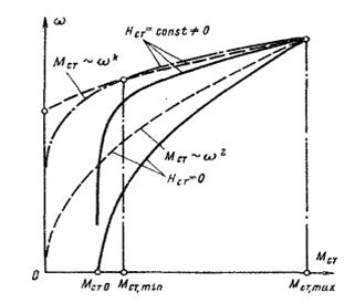 Рис. 6. Механические характеристики механизмов центробежного типа