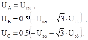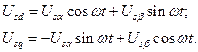 Преобразователь фаз служит для преобразования трехфазного напряжения в систему координат d-q по следующим законам:
