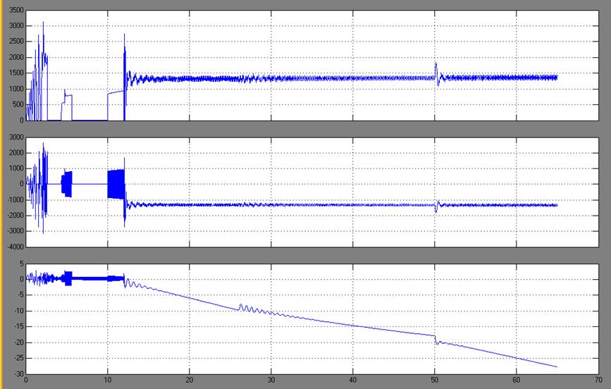 Как видно из графиков разгон с двигателя происходит за 12 с, снижение скорости происходит за 35 с, что в полнее приемлемо для этого механизма.