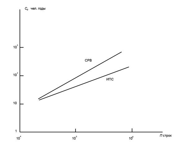 для сравнения эффективности труда при создании различных проектов ПС. Эта характеристика, конечно, различается для различных классов, размеров и других параметров комплексов программ, однако диапазон этих различий не столь велик как изменения размера, требований к качеству и других параметров. Так при диапазоне изменения размеров программ СРВ на четыре порядка средняя производительность труда изменяется только в два раза, что в ряде случаев существенно облегчает упрощенные оценки и прогнозирование ТЭП.