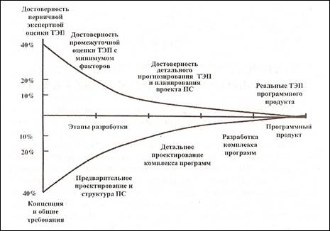 заложили основы для методов и моделей оценивания затрат, которые обладают удовлетворительной точностью. Современная экономическая модель оценки разработки ПС считается хорошей, если с ее помощью можно оценить затраты на программную разработку с точностью 20 % в 70% случаев, при условии использования модели, в классе проектов, на которые она ориентирована. Имеющиеся модели не всегда столь точны, как хотелось бы, но могут весьма существенно помочь в технико-экономическом анализе и обосновании решений при создании сложных ПС.