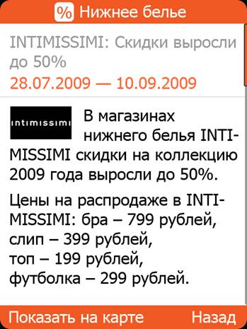 · Клиент, выбирая рекламное предложение на своем телефоне, имеет возможность прямо на экране с рекламным предложением получить самую важную информацию, которая необходима для принятия решения. Например, для предложения от кинотеатра - расписание сеансов;