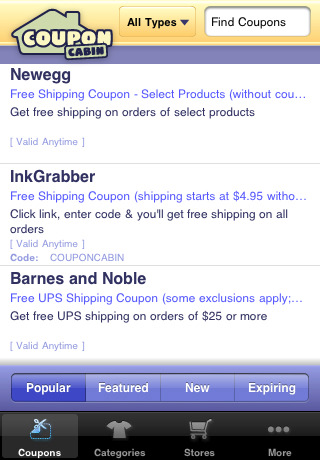 На Фиг.2 приведён экран приложение CouponCabin.