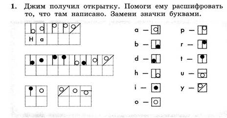 Ребята, а что мы подарим Джиму на день рождения? Дело в том, что Джиму пришла очень странная открытка: она зашифрована. Джиму очень интересно, что же там написано, и он попросил нас расшифровать эту открытку. Поможем Джиму? Это и будет наш общий подарок.