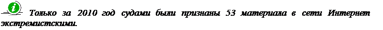 например, сеть «ВКонтакте» насчитывающая около 60 млн. человек. Только за 2010 г. следственные органы возбудили 13 уголовных дел, связанных с распространением в этой сети материалов экстремистского характера, в некоторых случаях установлены факты использования сайта для объединения в группы с целью совершения преступлений.