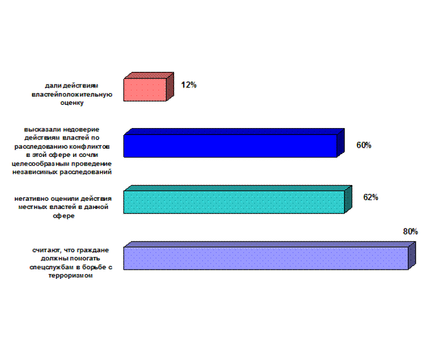 Цель исследования – изучение мнения россиян по вопросам, связанным с террористическими угрозами. Опросом были охвачены 3209 человек, проживающих в 12 субъектах Южного федерального округа, 14 субъектах Приволжского федерального округа, городах Москве и Санкт-Петербурге.