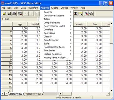 Создание базы и анализ эмпирических данных с помощью программы статистической обработки SPSS Base 10.0.