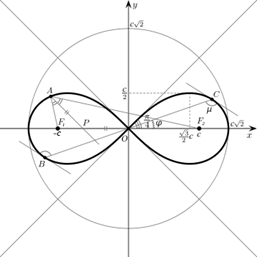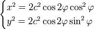 , и начало координат делит отрезок между ними пополам, то следующие уравнения задают лемнискату:
