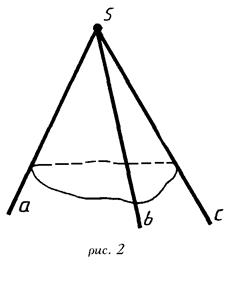 исходящие из одной точки и не лежащие в одной плоскости. Трехгранным углом (abc)