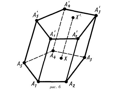 Призмой называется многогранник, который состоит из двух плоских многоугольников, лежащих в разных плоскостях и совмещаемых параллельным переносом, и всех отрезков, соединяющих соответствующие точки этих многоугольников (рис. 6). Многоугольники называются основаниями призмы, а отрезки, соединяющие соответствующие вершины,— боковыми ребрами призмы.