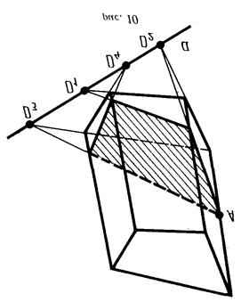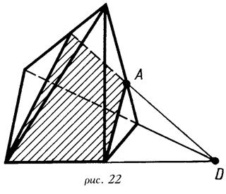 На рисунке 22 построено сечение четырехугольной пирамиды плоскостью, проходящей через сторону основания и точку А на одном из ее боковых ребер.