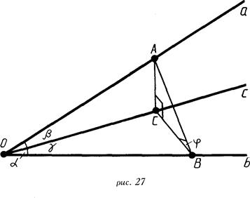 Опустим из произвольной точки А ребра а перпендикуляр АВ на ребро b и перпендикуляр АС на ребро с (рис. 27). По теореме о трех перпендикулярах СВ — перпендикуляр к ребру b.