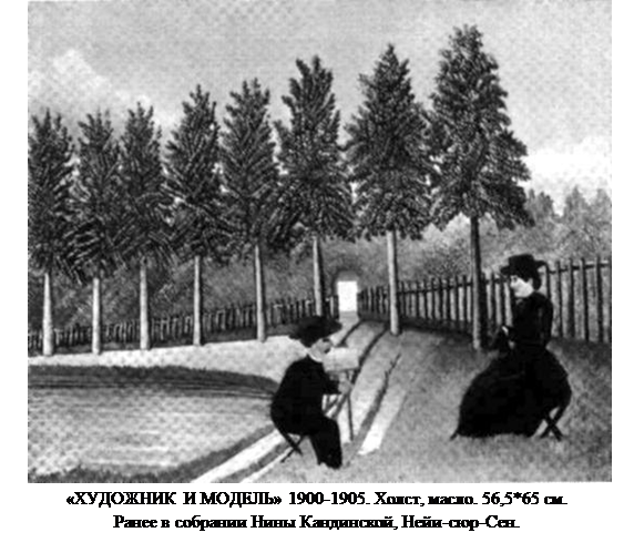 «Мое начальство постаралось назначить меня на спокойную должность, и работа не была для меня тяжким бременем». Зашло ли оно настолько далеко, чтобы разрешить ему установить мольберт на рабочем месте? Это, пожалуй, представляется неправдоподобным. Так или иначе, но картина Таможенная застава, целиком остающаяся работой художника-дилетанта, наделена удивительным чувством цвета. Тончайшие нюансы зеленых тонов преобразили скучный, почти фотографический вид города в спокойный идиллический сельский пейзаж. Каменная мостовая уступила место лужайке. Повсюду деревья. Не только вид изменился; вся композиция разработана на основе градаций зеленого цвета. За счет постепенного перехода от темных к светло-зеленым тонам, достигающим почти желтого в верхушках деревьев дальнего плана, создается ощущение пространственной глубины. Два оттенка зеленых сменяют друг друга на переднем плане; в одном из них ясно ощутимо присутствие синего, подчеркивающего разницу в цвете дерна, разделенного дорожкой. Единство колорита, не нарушаемое другими тонами, например, синим пятном маленькой тачки у черного забора, без тени сомнения показывает, что Руссо было известно действие воздуха, приглушающего цвет. Иначе говоря, эффекта отдаления он достигал цветом. Он не был в состоянии достичь его с помощью линейной перспективы, служащей средством для воспроизведения трехмерного пространства. Из-за непреодолимых для него технических трудностей в его картинах сохранялся неразрешимый контраст содержательной условности (линейная перспектива) и эмоционального понимания (воздушная перспектива), соединяющихся в изобразительном искусстве со времен Ренессанса. И в этом он действительно уникален.