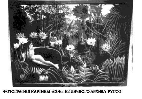 Особую технику Руссо впервые применил при работе над экзотическими пейзажами. Его пейзажи всегда отличались богатством колорита, но теперь, достигнув полной светосилы в хроматическом богатстве оттенков, он обрел основной принцип работы. Он полностью подчинился стихии живописи и писал, не заботясь о сходстве. Он по-своему и весьма своеобразно решил проблему имитации. Отныне он имел полное право быть в Осеннем салоне, где начал выставляться с 1905 года. Удивительно, как этот шестидесятилетний самоучка шел наравне с молодыми. Не стал ли его пышный лес с дикими зверями ассоциативной идеей для обозначения фовизма или, более того, этот термин символически мог исходить от тех, кто из-за него должен был подвергнуться критике. Пресса была полна хвалебных высказываний о его картине. Даже консервативный Иллюстпрасъон воспроизвел полотно Руссо на двух страницах отчета об Осеннем салоне.Так Руссо вступил в последний период своей жизни, апогеем которого стала картина Сон. Из прошлого он сохранил потребность следовать оригиналу и иногда для прорисовки контуров фигур зверей все же использовал пантограф. С все большей свободой он развивал тему растений, заполнявших переплетением форм громадные полотна. Зрителям они казались пришедшими из тропических лесов. Так возникло предположение о поездке Руссо в Мексику и рассказы о его частых посещениях парижского ботанического сада. Некоторые исследователи пытались найти прообразы этих растений в природе, в то время как на самом деле они явились плодом воображения Таможенника, выражением его богатой фантазии. Причудливость и густота растений облегчали Руссо решение проблемы построения пространства. Последнее оставалось для него камнем преткновения — он так и не смог научиться следовать законам перспективы. Определить границы плоскости, передать трехмерное пространство, придать композиции глубину, - все это для него было непостижимым. Теперь же, в результате сложного переплетения растений и их чередования на полотне возникала иллюзия пространства, которой способствовало колористическое решение. Меняющиеся оттенки причудливых растений создавали ощущение зрительной удаленности. Пышность и красочность растительности всегда зависят от цвета. Сами по себе растения не представляют у Руссо определенные образы, которые можно было бы найти в хорошо изученной европейской флоре. Следовательно, все они изменены и их невозможно узнать: они вырваны из реального пространства и своего естественного состояния и формы, однако все они выписаны так тщательно, что выглядят правдоподобными. Эта работа явилась еще одной формой проявления фантазии художника. Выразил это Руссо за несколько месяцев до своей смерти, когда он создал Сон...