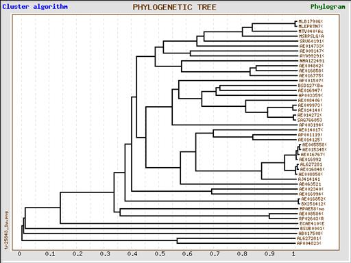 Исходя из полученных выравниваний белков S7 и межцистронных областей бактерий построены филогенетические деревья эубактерий. Для выполнения данной задачи была использована программа, расположенная на сайте http://www.genebee.msu.su/services/phtree_reduced.html