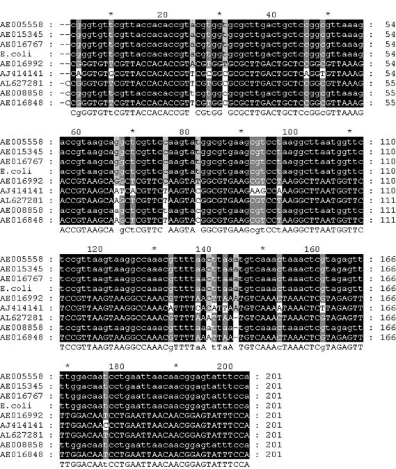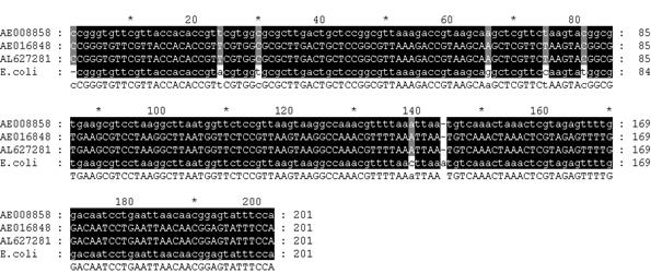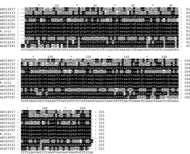 С помощью программы GeneDoc были построены выравнивания межцистронных областей семейств бактерий в сравнении с межцистронным фрагментом E