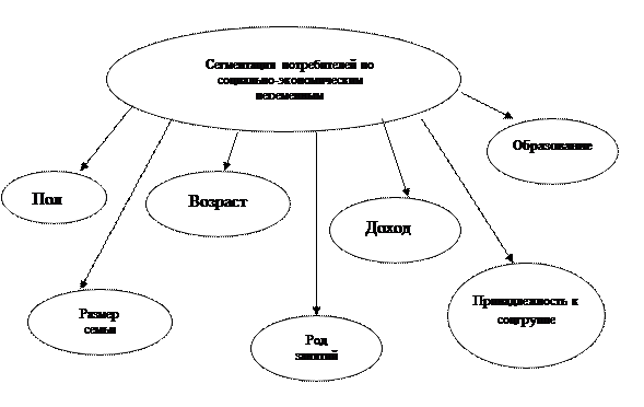 Сегментация по социально-экономическим переменным – разделение потребителей на группы по признакам пола, возраста, размера семьи, дохода, рода занятий, образованию, принадлежности к социальной группе.