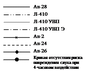 В связи с тем, что уровни шума изменяются в динамике полета и в структуре работы летных экипажей имеются межрейсовые перерывы (вахтовый режим работы), при оценке шумовой нагрузки целесообразно ориентироваться на эквивалентные уровни звука. С целью соизмеримости шумового воздействия учитывается параметр эквивалентности шумовой экспозиции, который для преобладающих уровней шума (LА экв) в кабинах ВС составляет 3. Таким образом, увеличение эквивалентного уровня воздействующего шума относительно ПДУ на каждые 3 дБА предполагает соответственно уменьшение времени экспозиции вдвое. Тем самым за нормативную величину принимается это время воздействия шума. При этом необходимо также учитывать ослабление внешнего шума средствами индивидуальной защиты (Рекомендации по совершенствованию нормативно-технической документации, регламентирующей шум в кабинах ВС. Методика факторного анализа среды кабин ВС. М.,1989; Методические рекомендации по дозной оценке производственных шумов. МЗ СССР,М.,1982).