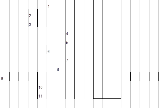 Ответы:1 Делитель 2 Знаменатель 3 Исполнитель 4Кабель 5 Модель 6 Носитель 7 Панель 8Пиксель 9 Последовательность 10 Указатель 11 Числитель.