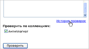 » внизу формы. Через несколько секунд Системой будет сгенерирован и выдан отчет о результатах проверки. Отчеты о проверках, сделанные зарегистрированным пользователем, хранятся в кабинете и доступны по ссылке «История проверок».