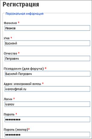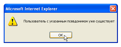 В том случае, если Вы введете либо логин, либо почтовый адрес, либо псевдоним для форума, которые уже были использованы другим пользователем, зарегистрироваться не удастся - система выдаст соответствующее предупреждение. Логин, почтовый адрес и псевдоним для форума должны быть уникальными.