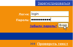 » на форме входа в систему.