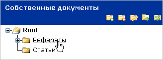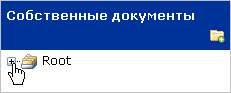 После регистрации в Вашем кабинете по умолчанию создается корневая папка Root. Для развертывания списка подпапок папки, необходимо нажать на пиктограмму «+» рядом с ее названием. Список сворачивается нажатием на пиктограмму «-».
