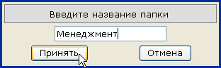Для того чтобы переименовать папку, щелкните по ее названию. Нажмите на иконку «Переименовать» ( ). В появившемся окне введите новое название папки и нажмите на кнопку «Принять».