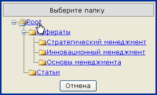 Для того чтобы загрузить файл в систему, выберите папку, в которую должен быть помещен файл.
