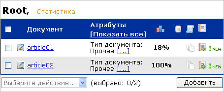 Список документов обновляется при переходе по страницам, но не обновляется автоматически при просмотре страницы. Для обновления страницы и статусов проверки документов необходимо выбрать действие «Обновить» в выпадающем списке действий, расположенном под таблицей.
