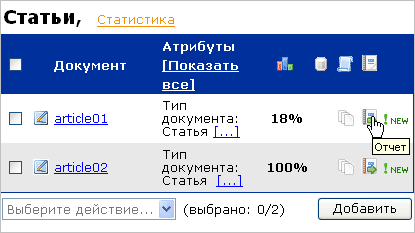 Вы можете просматривать отчеты о проверке и историю отчетов документов. Для этого нужно щелкнуть мышью на соответствующие иконки ( , ). Документы, отчеты по которым еще не были просмотрены пользователем, отмечаются словом «NEW» (новый ). Оценка