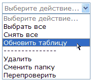 Пункт «Снять все» - снимает все отметки. Пункт «Обновить таблицу» служит для обновления информации в таблице (в отличие от кнопки «Обновить», описанной в разделе «Работа с папками», которая обновляет всю страницу целиком). Используйте это действие в случае, если вы находитесь в ожидании построения системой отчета о проверке загруженного ранее документа.