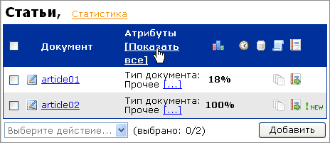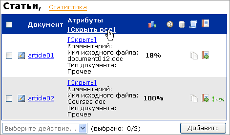 – можно как по отдельности, так и по всем документам текущей папки одновременно. Чтобы развернуть для просмотра атрибуты отдельного документа, кликните на ссылку [...] в строке интересующего документа; если необходимо развернуть для просмотра атрибуты всех документов сразу – кликните на ссылку [Показать все]