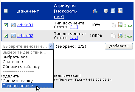 Для того чтобы перепроверить файл(ы), отметьте их галочками, затем выберите из выпадающего списка пункт «Перепроверить».