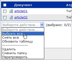 документов в другую папку осуществляется по аналогии. Пункт выпадающего меню «Выбрать все